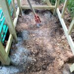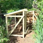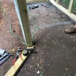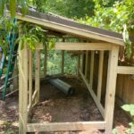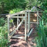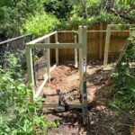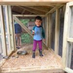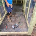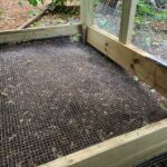 As for the coop design, we actually have additional finishing pieces running around the entire foundation of the coop to provide extra support for the wall/window hardware wire, cover any sharp tips, and make things look better. The only spot where there’s some exposed flooring wire (shown in the video) is where the coop goes uphill and has a corresponding step up. Something you might consider is sheet mulching around your coop with cardboard, then putting mulch on top. That would kill out the grass around your coop/run so you wouldn’t have to weed whack.