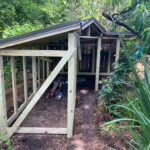 - no large tree branches are hanging overhead that could snap off and fall on the coop;