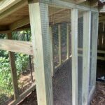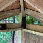 The overall coop should be anchored to the ground (ideal) or heavy enough so that it can’t easily be tipped over by a large predator or blown over by strong winds.