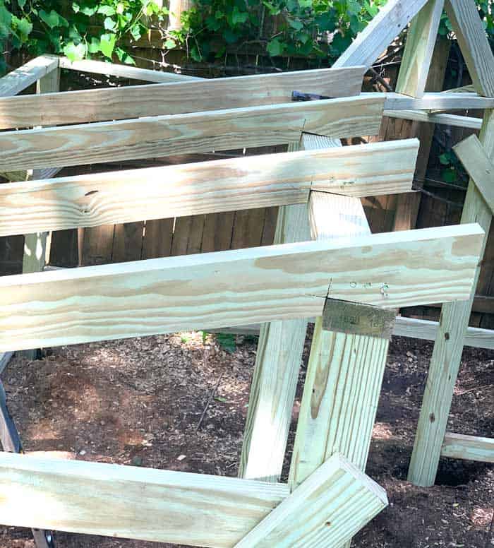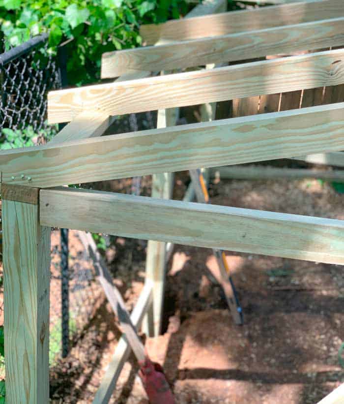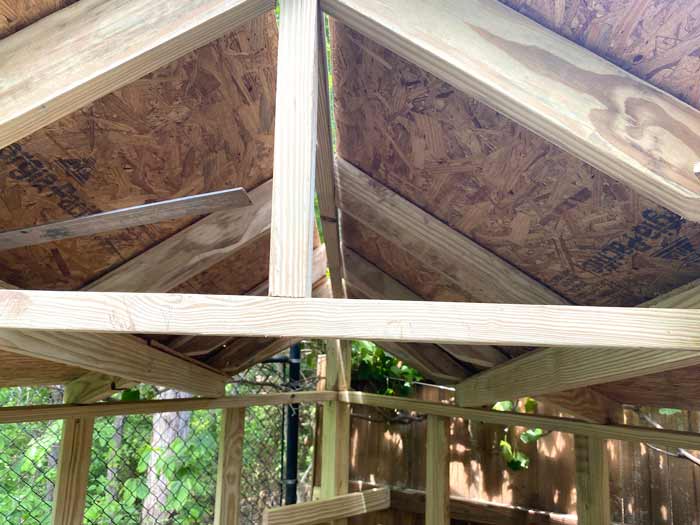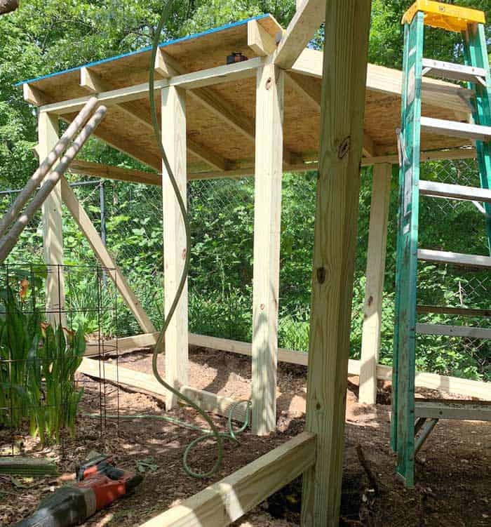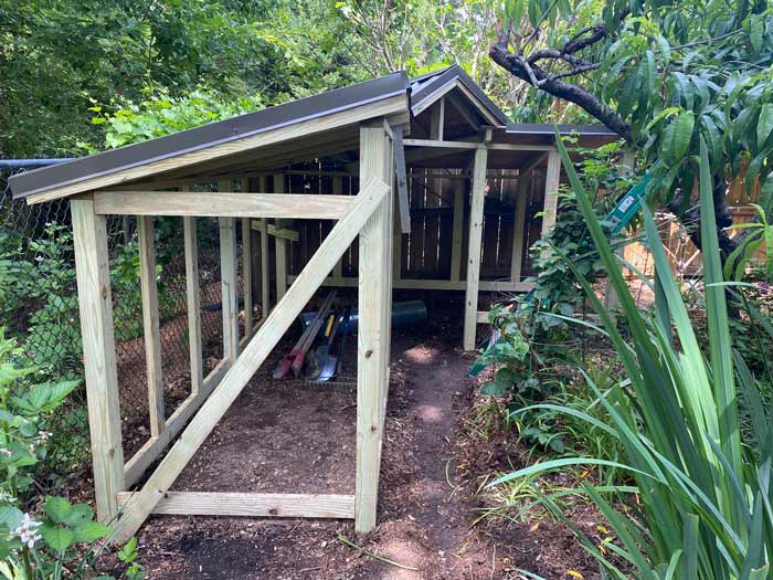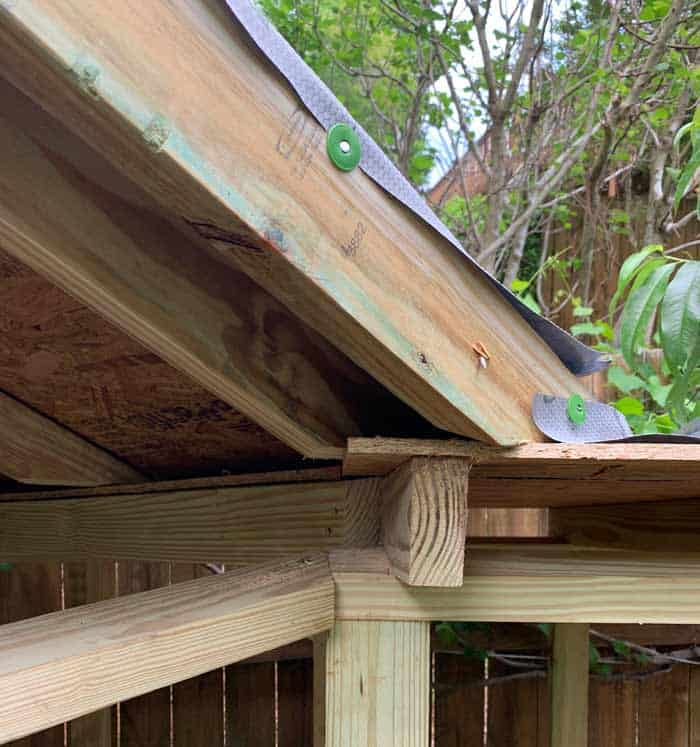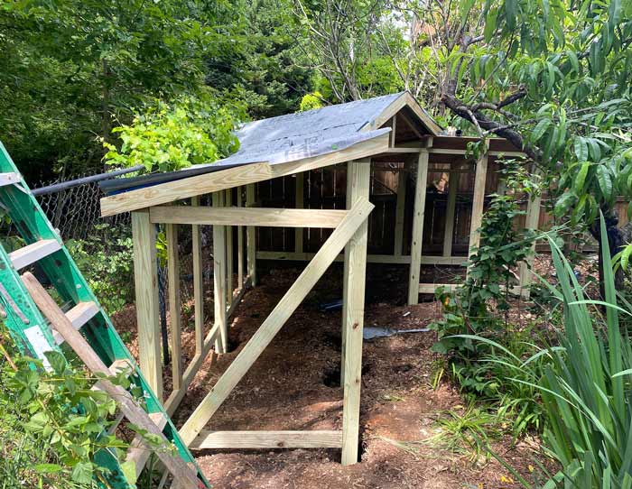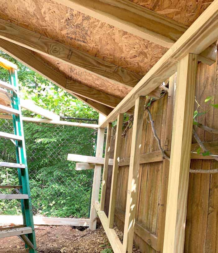 - Treated lumber – We didn’t use pressure-treated lumber throughout, which led to some wood rot. Modern pressure-treated wood in a coop does not pose a health risk to ducks.