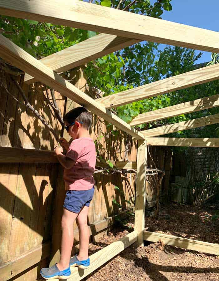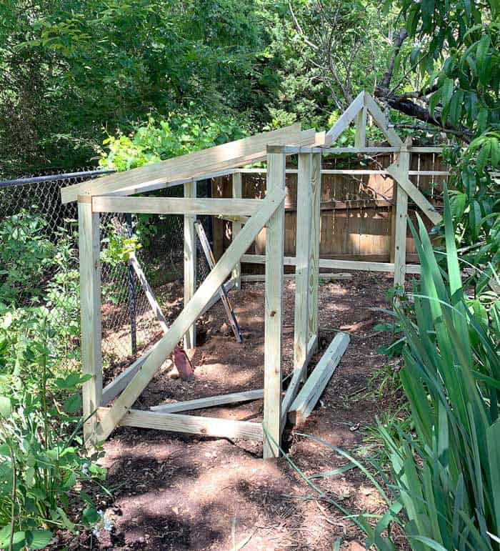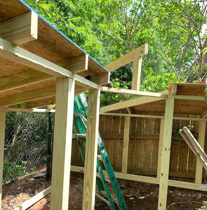 As for the location, we decided to keep our ducks’ new coop in the same spot as their old coops since it’s the ideal spot in our yard. Why? It’s got extra protection via fences, it gets morning sun, they’re used to their coop being there, and there aren’t tree branches hanging above.