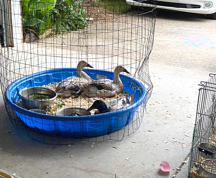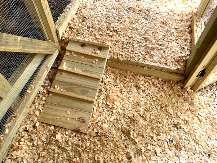 Any sharp, cut points on the hardware wire is either removed and/or bent to prevent duck foot injury. Further, the hardware wire is ALWAYS covered with at least 2-3″ of large-flake, low-dust pine shavings, our preferred bedding for duck coops. (See our duck coop bedding comparison to find out why.)