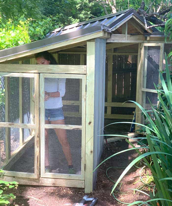 Our old coops were 3′ tall, which was less than ideal. Accessing the coops for cleaning, egg collection, etc. meant squatting or crawling. And you really don’t want to crawl inside a duck coop.