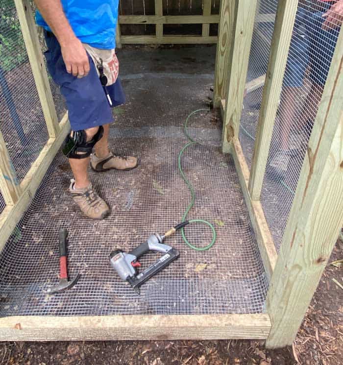 We completely predator-proofed Waddle Inn with a single 48′ x 100′ roll of Seboss 19-gauge 1/2″ hardware wire. Our predator-proof floor system for ducks is relatively simple and inexpensive to install, provides 100% protection, and means you don’t have to install any secondary floor defenses like predator skirts or trench caging.