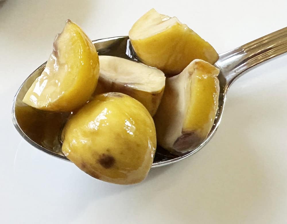 - (Optional) If you want smaller sized chestnut pieces, cut cooled baked chestnuts into smaller pieces, either quarters or eighths. Smaller sizes will allow more liquid penetration into the starchy chestnuts during fermentation.