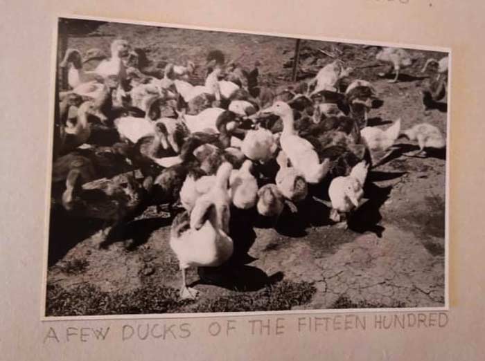 Jacqui: My mother says that she and the other children were sent crawling into the duck houses to collect the eggs, and that Leslie was quite the inventor and engineer. He fashioned his own way to open the doors for the younger duckling to enter areas of the pens without having to go in. A little pulley system. Archaic but effective. Also she said he made his own cage to catch the crows to stop them feasting on the ducklings.