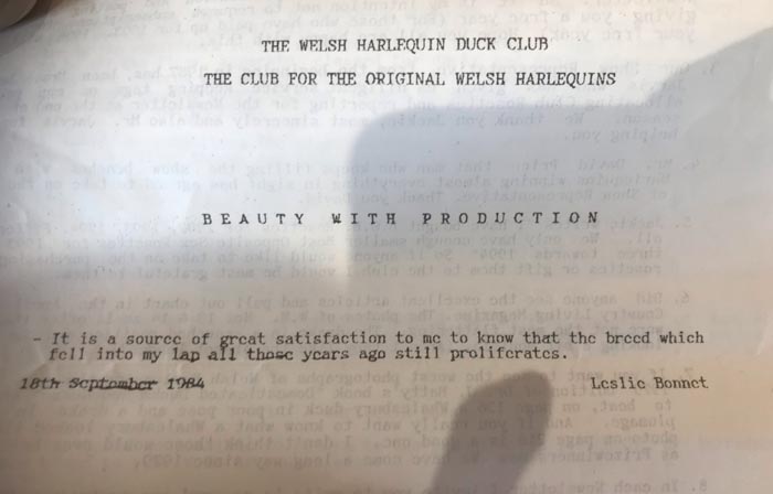 More living history about Welsh harlequin ducks (from the granddaughter of the original breeder)