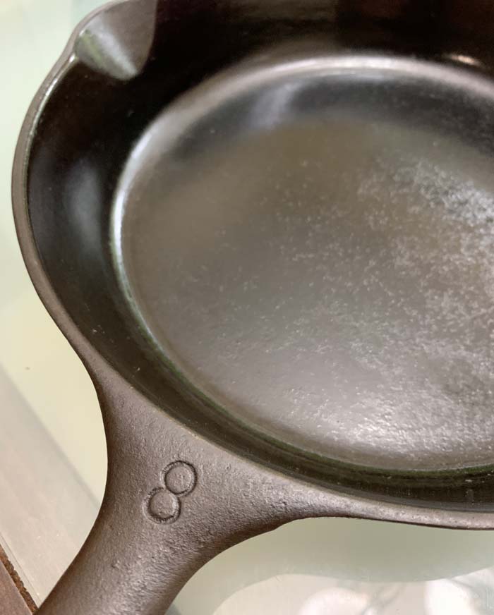 7. The shape of pan you use to make crepes is important. Ideally, it has a gently curved edge so the crepe batter just slightly rolls up the edges as you spin the pan to make the batter spread thinly and evenly. We use an antique cast iron Wagner #8 for our crepes (which is 8″ across on the base).
