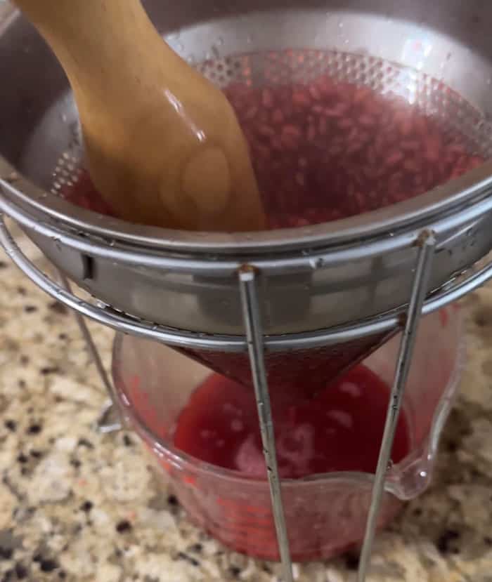 2. Chinois strainer – The most important kitchen tool you’ll need for this pomegranate molasses recipe is a chinois strainer with a pointed wooden pestle and stand (like this one on Amazon).